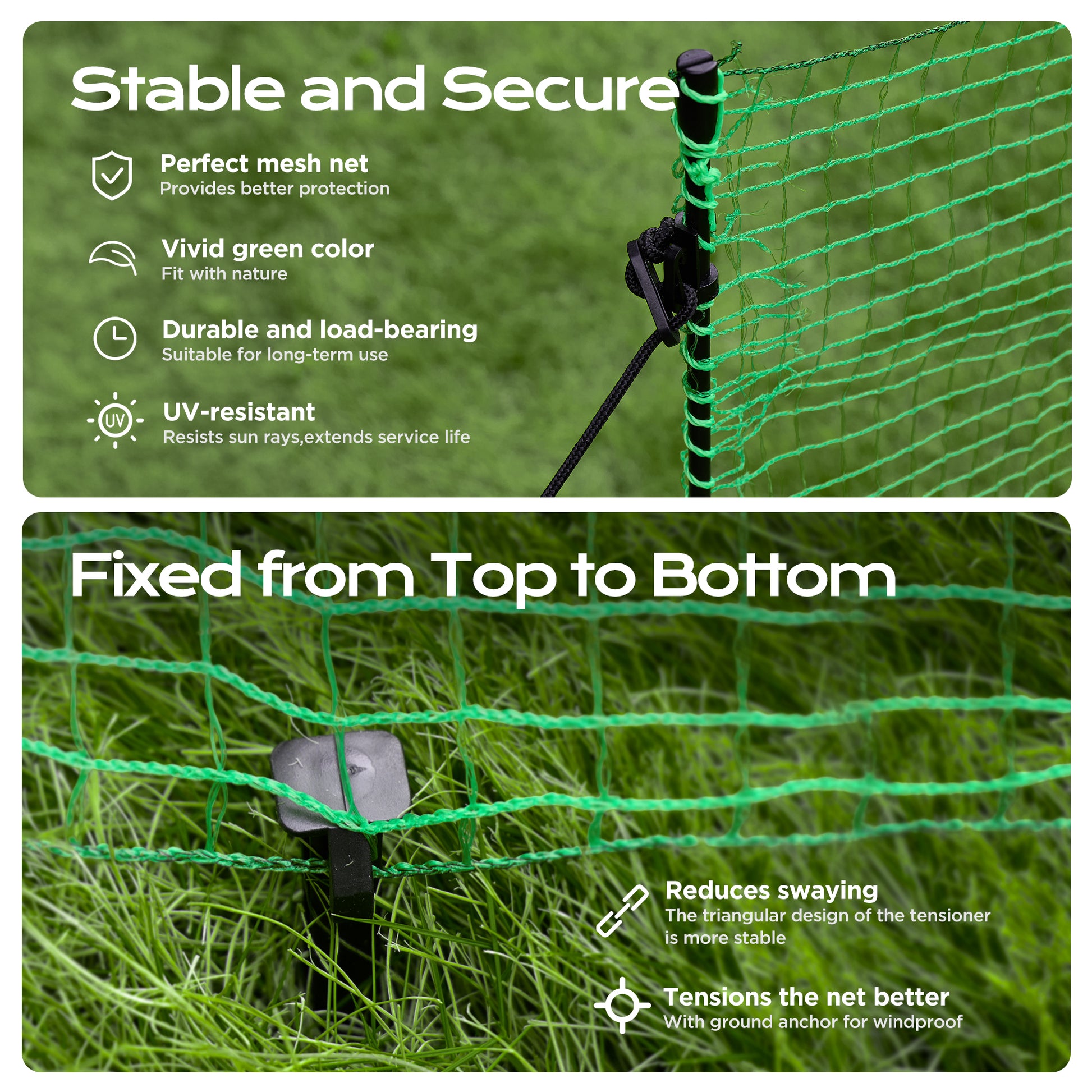 | Included Components | Plastic netting mesh, Windbreak ropes, Step-in stakes | Plastic netting mesh, Windbreak ropes, Step-in stakes |