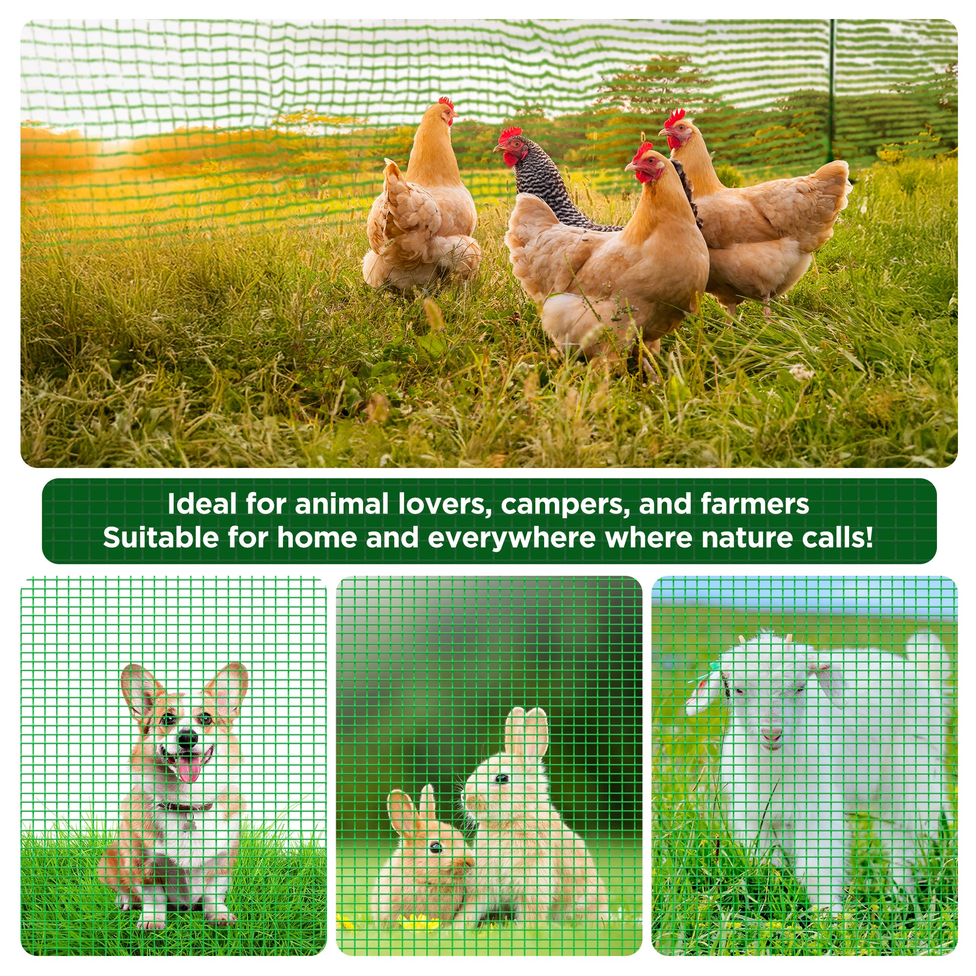 Provides a safe boundary to protect poultry, geese, rabbits, and garden areas. The breathable, non-electric mesh also deters predators like foxes and raccoons, making it perfect as a snow fence, chicken fence, or garden animal barrier.